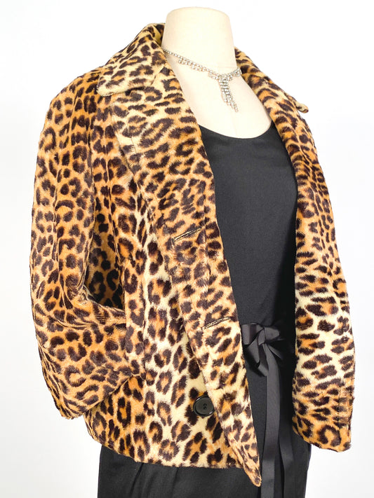 Glamorous 1950s Faux Leopard Coat / Waist 38