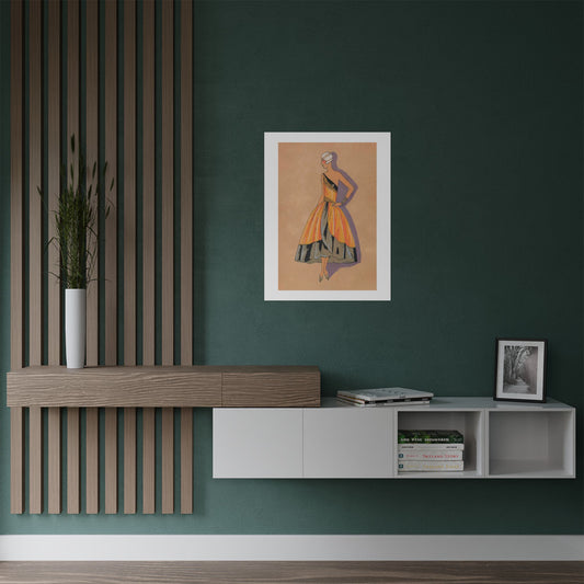 Vintage 1920s Fashion Illustration Satin Poster Print - Elegant Taffeta Dress Design
