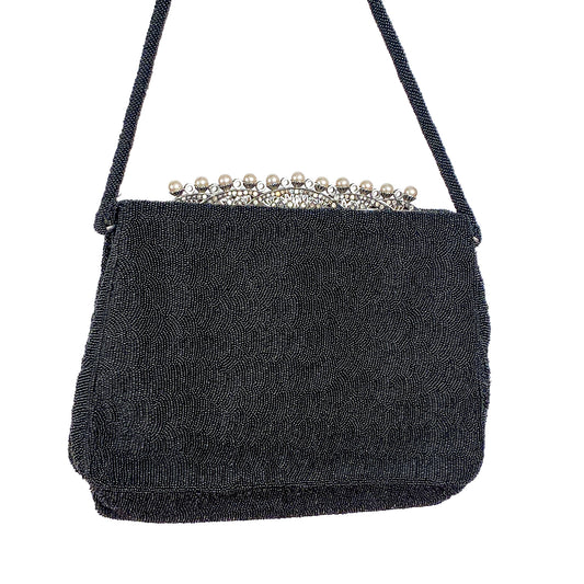 Vintage French Mirco Beaded Evening Bag with Pearls