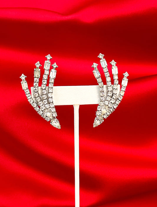 1940s 'Old Hollywood" Clear Rhinestone Statement Clip-on Earrings
