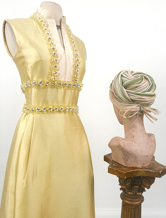 1960s Lemony Yellow Lilli Rubin Evening Gown / Waist 30