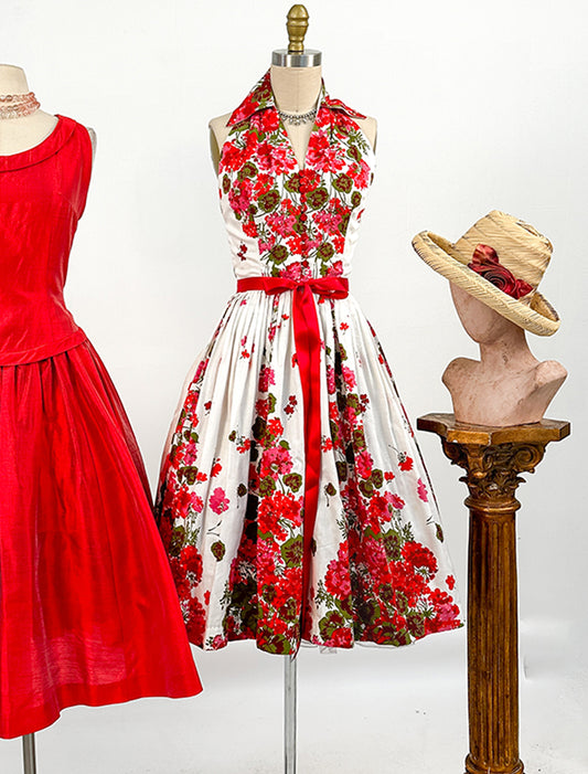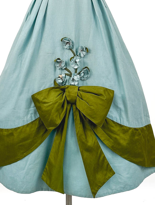 1950s Sweet Pea Summer Dress with Bow Hemline / Waist 26
