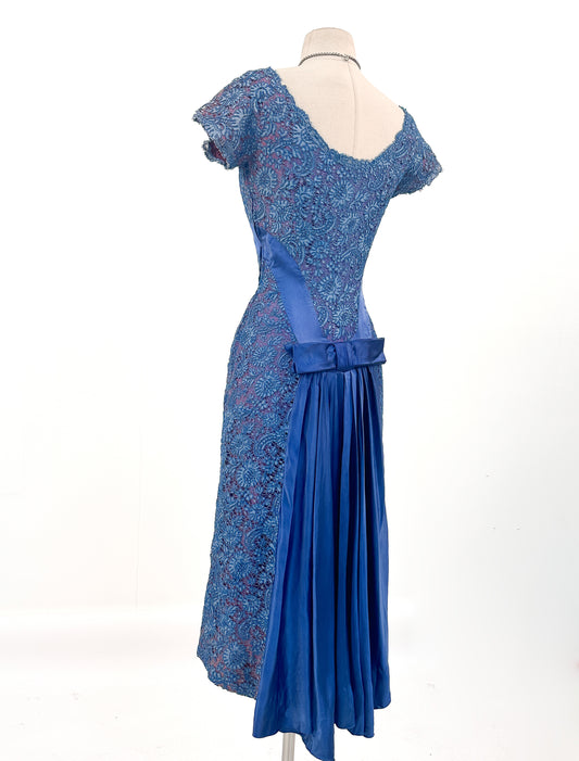 1960s Lace Wiggle Dress with Fishtail Train / Waist 26