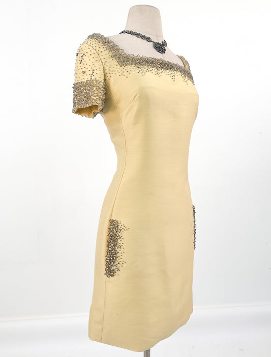 1960s Yellow Beaded Shift with Pockets / Waist 30-32"