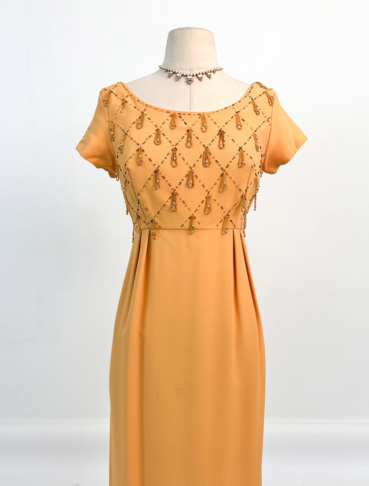 1960s Beaded Orange Empire Waist Dress / Waist 26-28