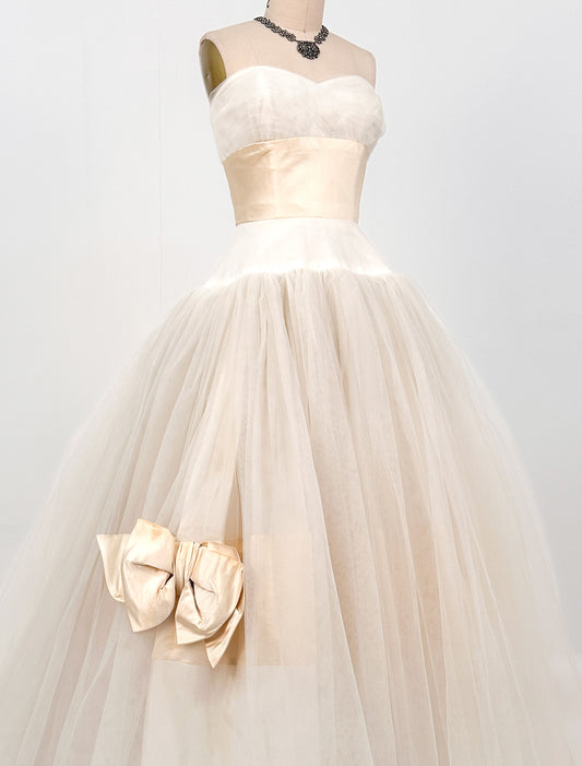 1950s Glamorous Tulle and Satin Wedding Gown / Waist 24.5