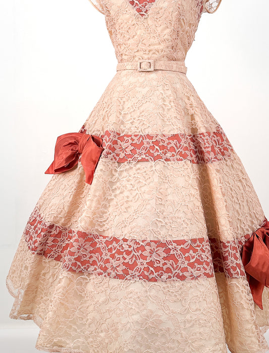 1950s Pink Champagne Lace Dress by Suzy Perette / Waist 26