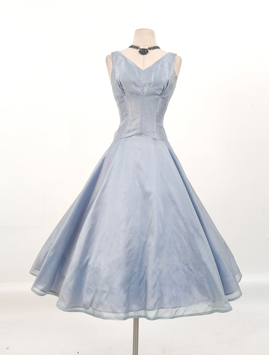 1950s Shimmering Light Blue Dress with Matching Coat / Waist 26