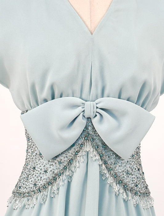 1960s Light Blue Chiffon Beaded Dress / Waist 26