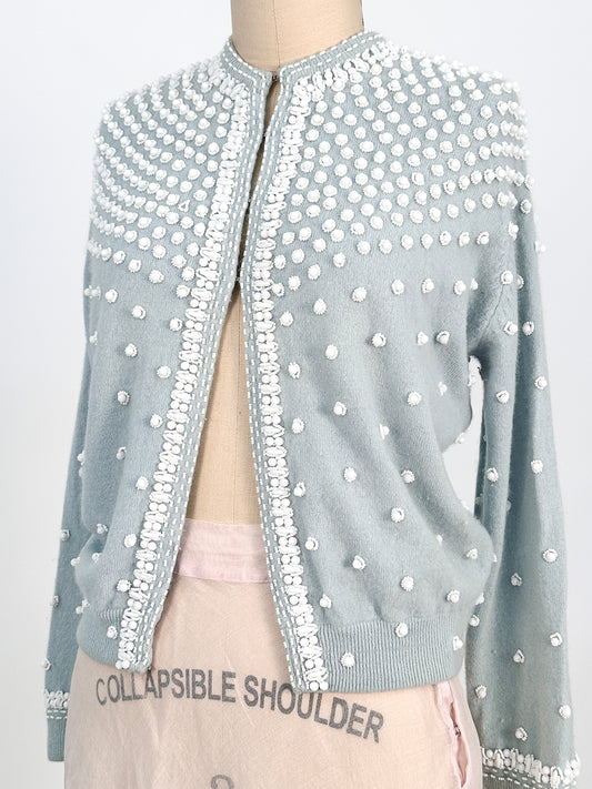 1950s Icy Blue Beaded Sweater / Fits up to a Bust 42-44