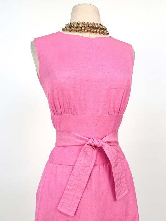 1960s Barbie Pink Raw Silk Shift with Sash / Waist 30