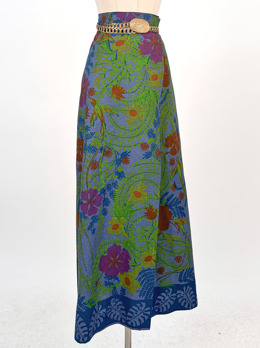 1960s Tropical Floral and Bird Print Cotton Wrap Skirt / Waist 30