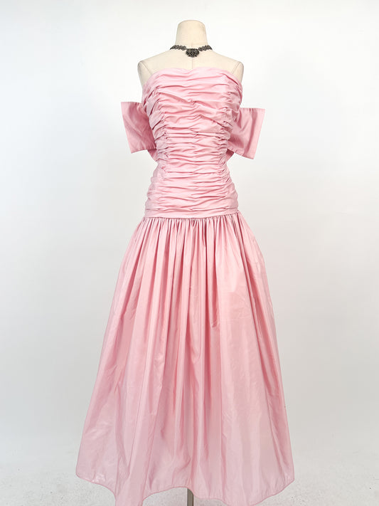 1980s Heavenly Pink Satin Gown by Victor Costa / Waist 28