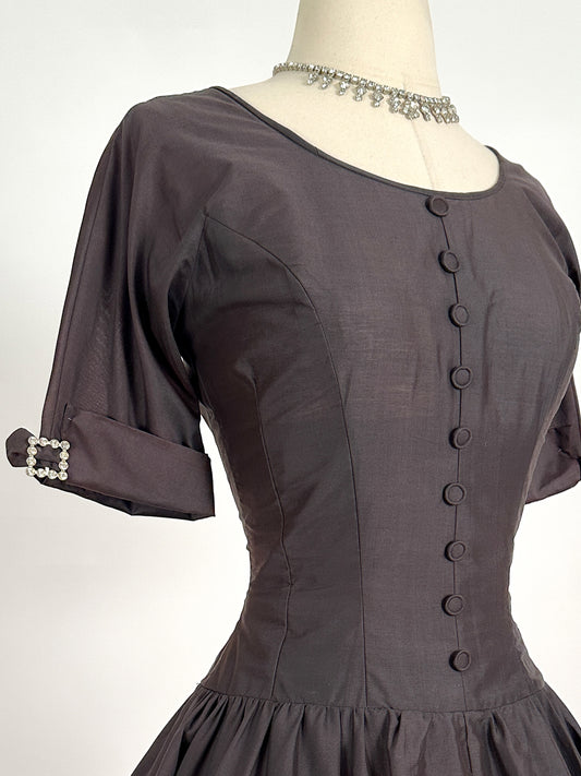1950s Polished Cotton Fit and Flare with Rhinestone Buckles / Waist 26