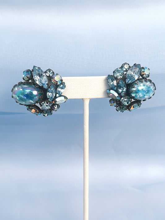 1960s Cluster Blue Rhinestone Clip-on Earrings