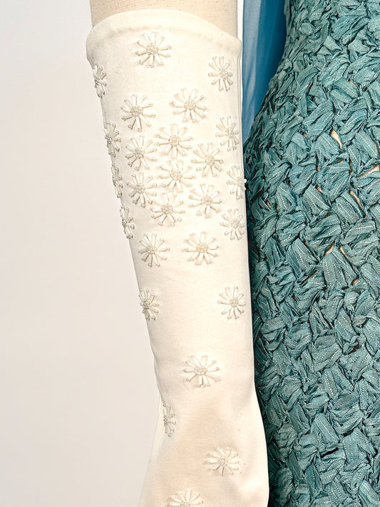 1950s – 60s White Cotton Three-Quarter Beaded Gloves