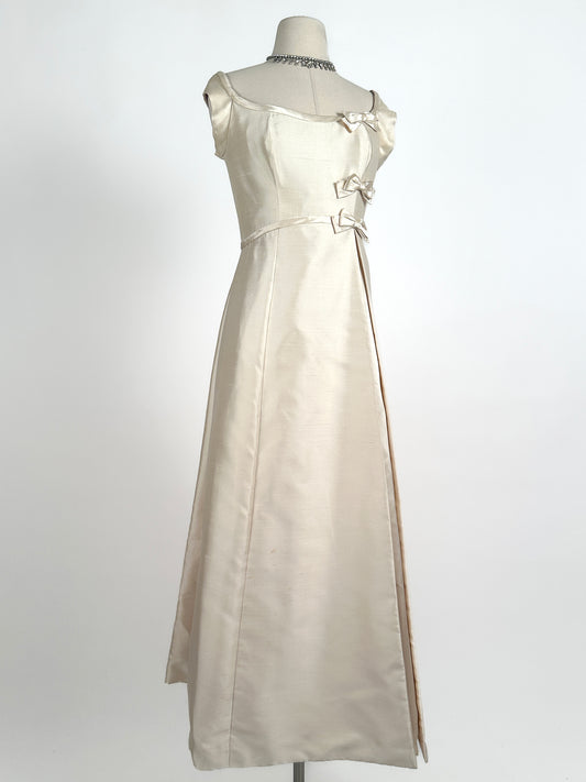 1960s Silk Shantung Wedding Dress Adorned with Bow / Waist 28