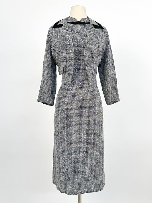 1950s Plaid Wiggle Dress and Jacket with Velvet Trim / Waist 32