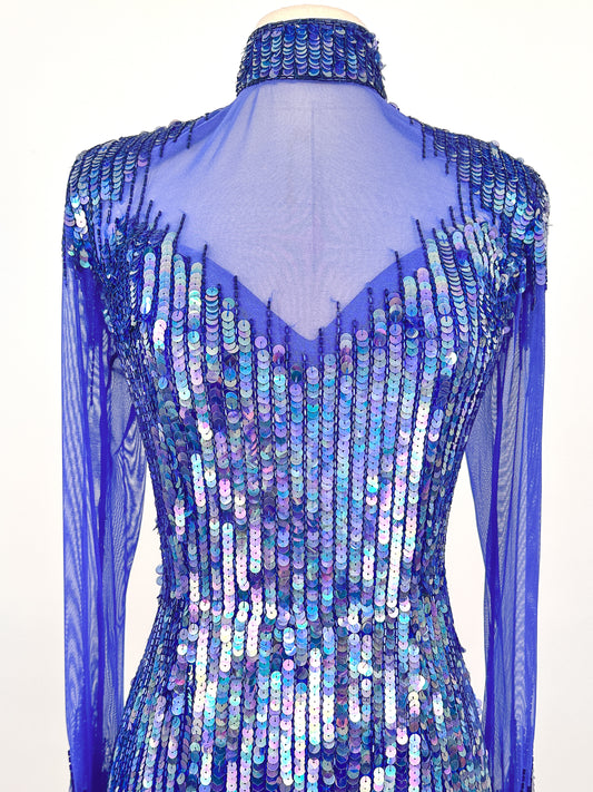 1980s Striking Cobalt and Purple Sequin Gown by Casadei / Waist 30