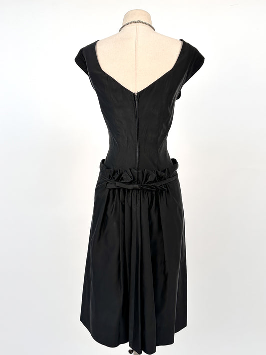 1950s Satin Wiggle Dress with Bustle / Waist 32
