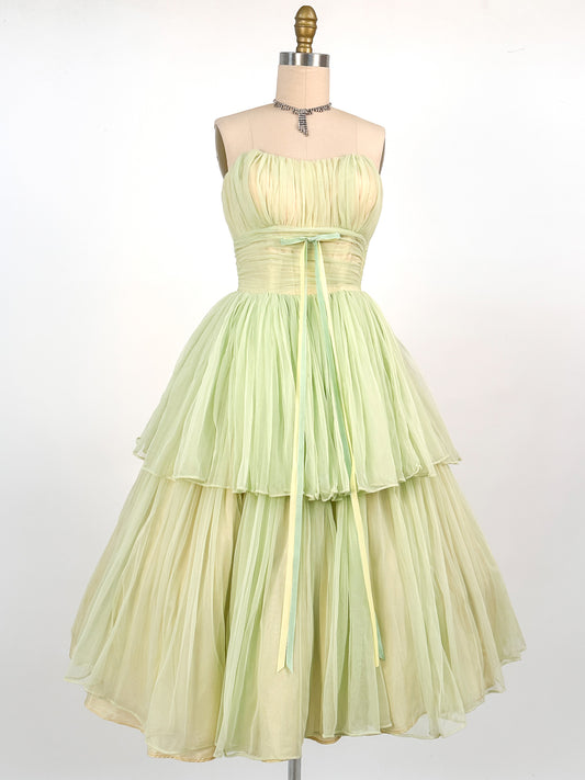 1950s Lemon and Lime Gauzy Chiffon Party Dress / Waist 24