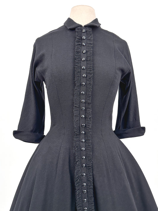 1950s Black Knit Winter Dress by Suzy Perette / Waist 28