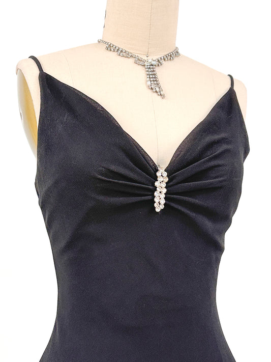 Y2K Black Evening Gown with Rhinestone Accent / Waist 24