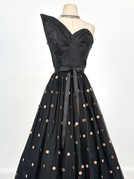 1950s Black Lace and Tulle Gown by Emma Domb / Waist 28