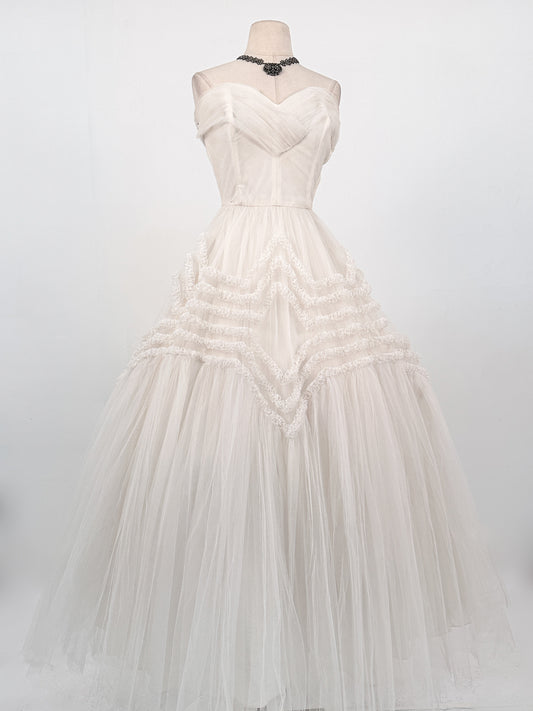 Dreamy 1950s Cloud White Tulle Gown / Waist 25
