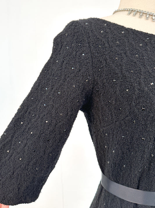 1950s Knit Dress with Black Rhinestones / Waist 30