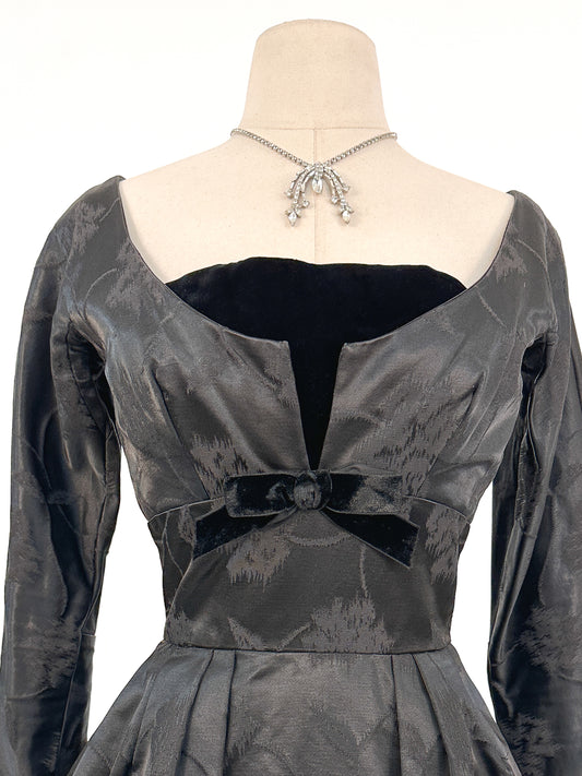 1950s Floral Brocade Dress with Velvet Bodice / Waist 26