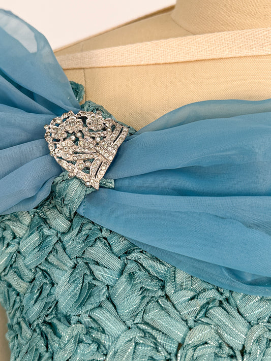 1960s Emerald Colored Glass and Rhinestone Brooch