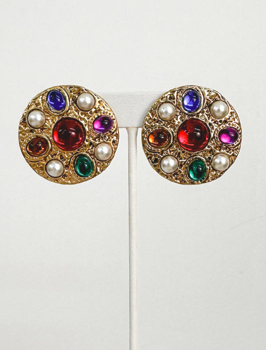 1990s Gold Clip-ons with Multi-Colored Gems