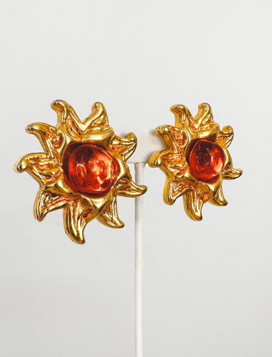 1990s Golden Sun Clip-on Earrings