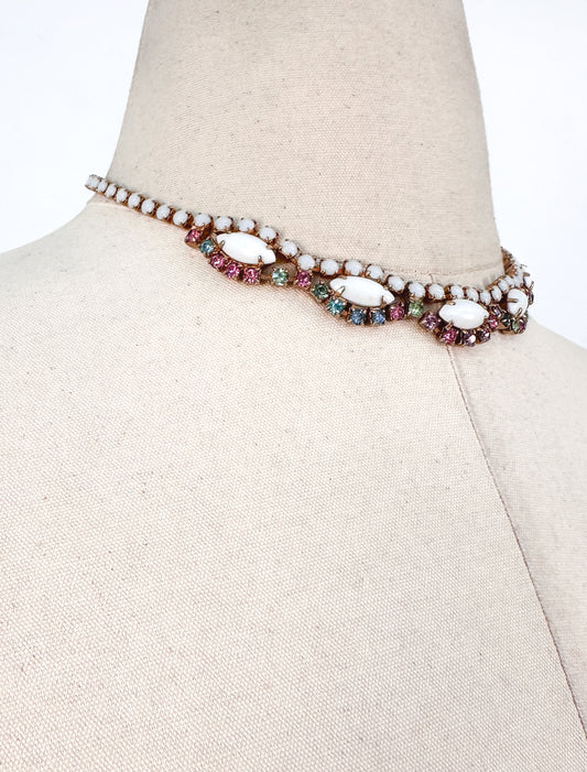 1950s White Enamel Multi-Colored Rhinestone Necklace