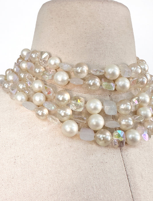 1950 Pretty in Pink Five Strand Pearl Neckalce