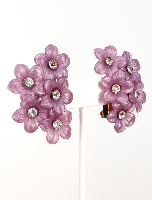 1960s Purple Flower Clip On Earrings
