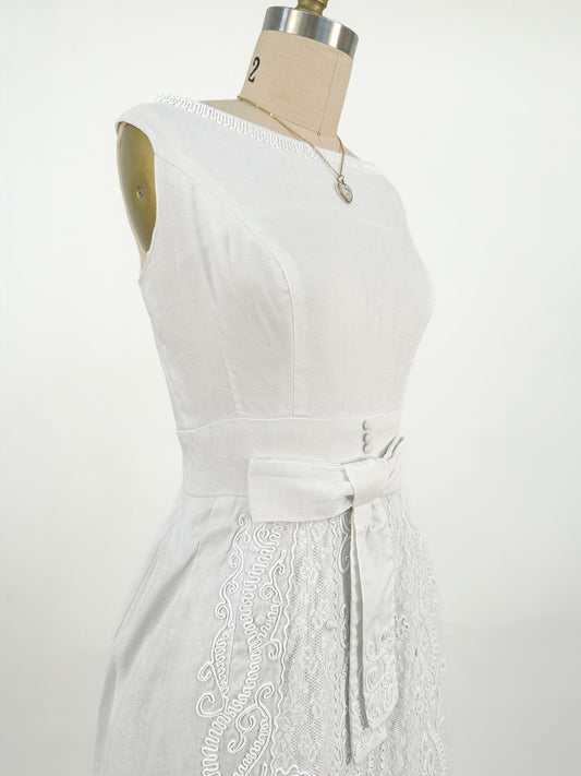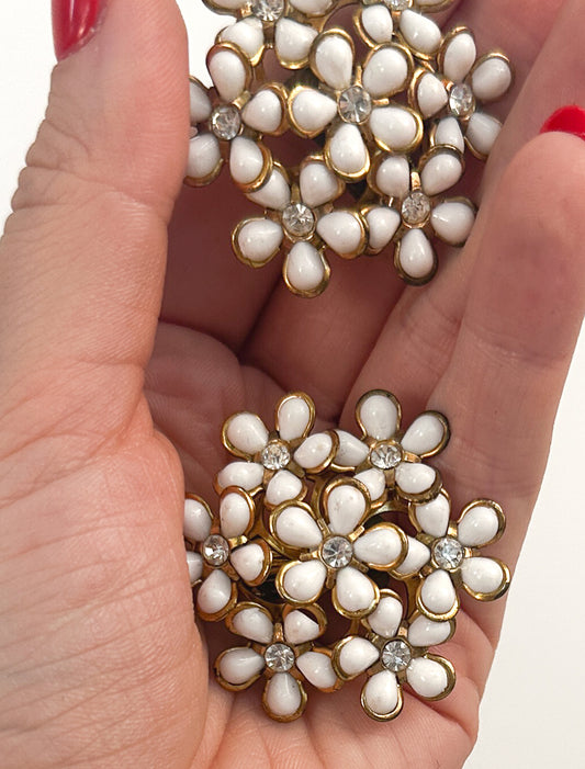 1960s White Petite Flower Statement Earrings with Rhinestone / Screw Backs