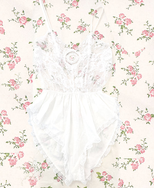 1980s White Lace Teddy by Lily of France