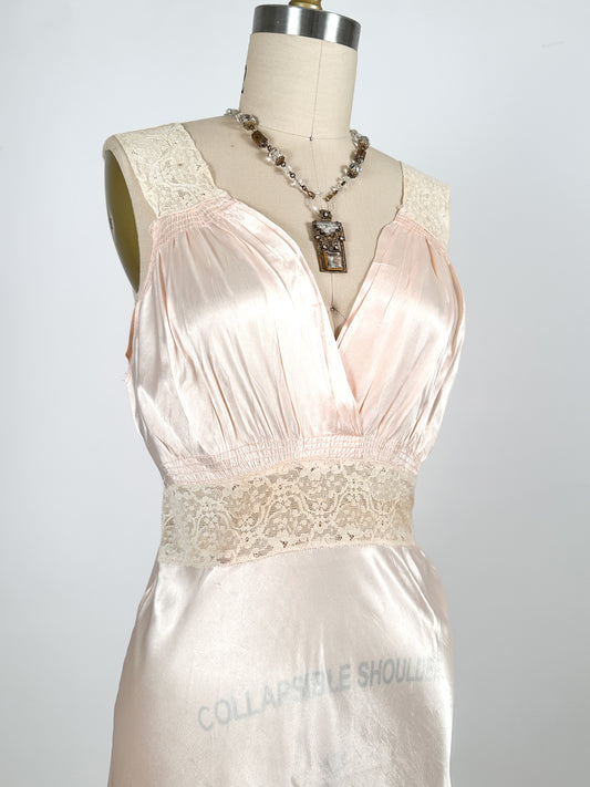 1930-40s Pale Pink Shimmering Nightgown with Lace / Waist 30