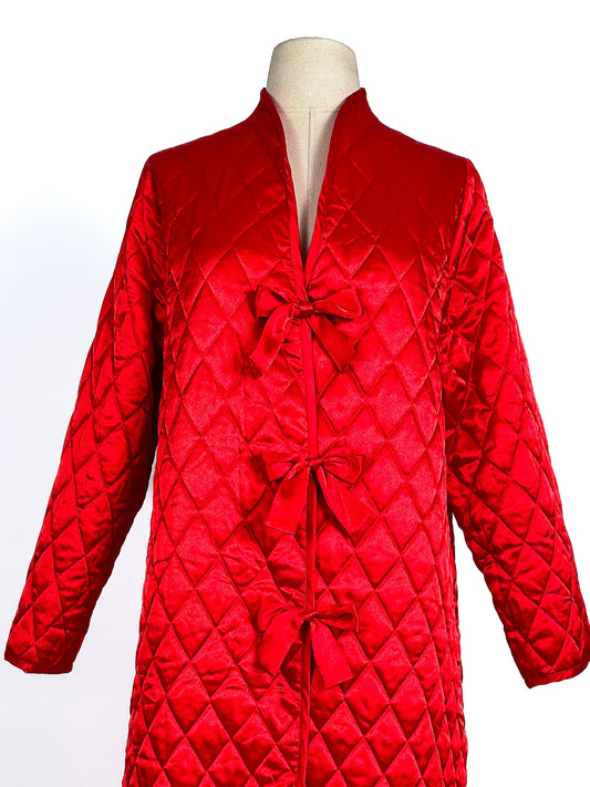 1980s Striking Red Quilted Satin Robe by Valentino / One Size