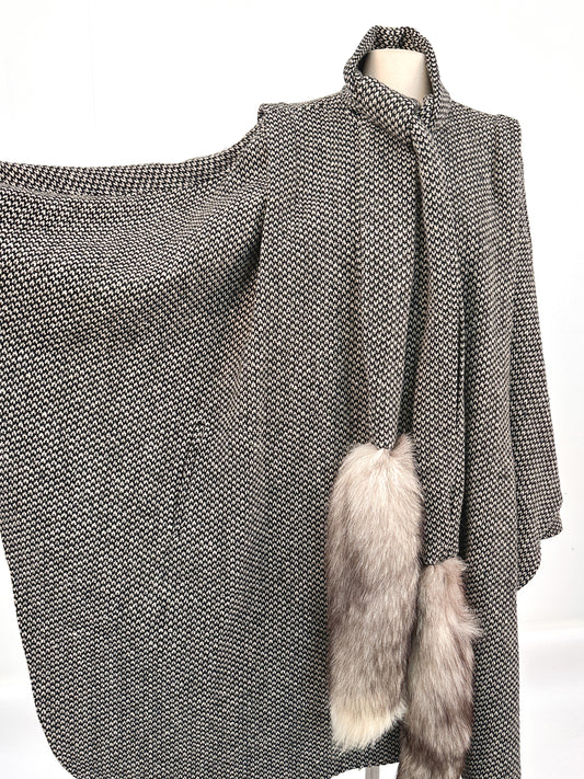 1980s Houndstooth Batwinged Coat / OSFM