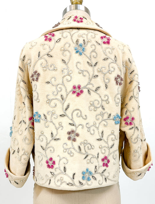 1950s Cashmere Beaded Soutache Swing Jacket / Fits up to a Bust 42"