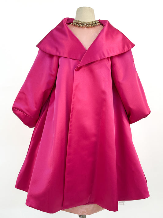 1980s Hot Pink Satin Opera Coat / One Size Fits Most