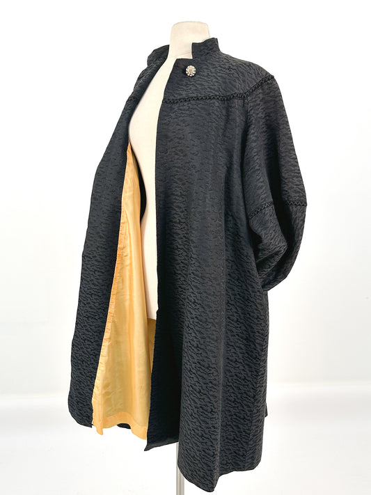 1950s Black Jacquard Swing Coat with Gold Lining / OSMF