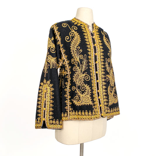 1960s Black Wool Jacket with Gold Embroidery / Bust 40