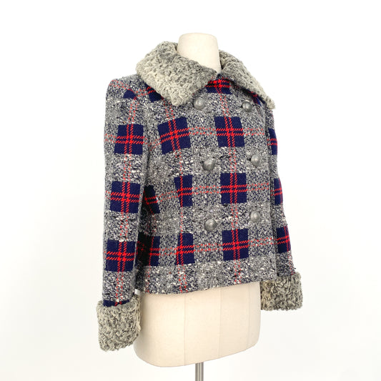 1950-60s Plaid Wool Coat with Curly Wool Collar and Cuff by Milgrim / Bust 38
