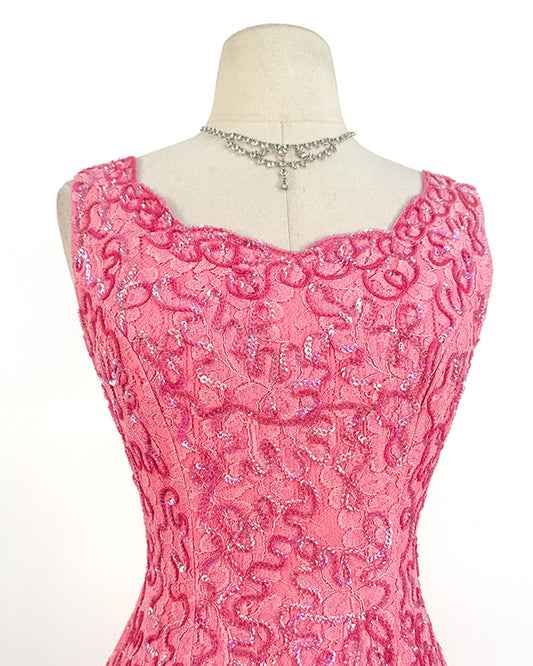 1960s Sparkling Pink Sequin Gown / Waist 28