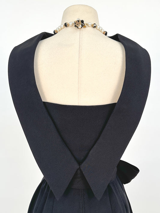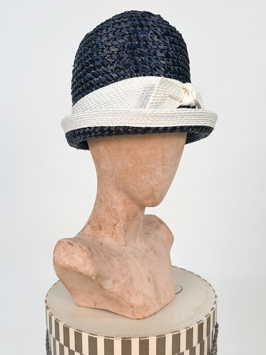 1960s Navy Bubble Hat with White Linen Trim by Mr. John / One Size