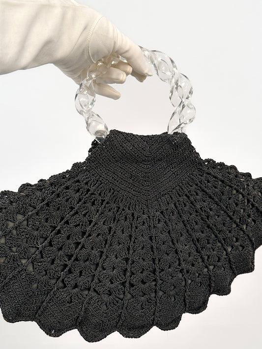 1930-40s Point De Beauvais Black Beaded Evening Bag